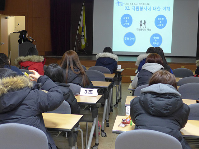 2014년 겨울방학동안 자원봉사 활동참여를 하는 청소년들을 대상으로
