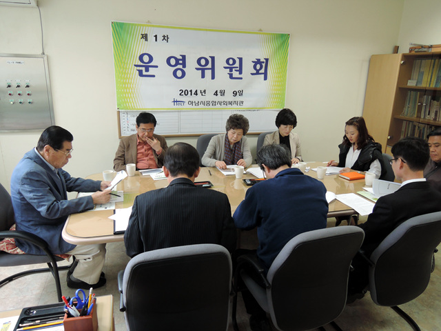 2014년도 제1차 운영위원회의가 4월 9일(수) 11시에 복지관에서 개최되었습니다. 1분기 동안의 예산집행 및 후원현황, 사업실적, 주요추진사업과 2분기 사업계획에 대해 보고하는 시간을 가졌습니다. 특히 금년도 첫번째 운영회의인 관계로 앞으로의 복지관 운영에 대해 심도있게 논의하는 중요한 시간을 가졌습니다. 바쁘신 와중에도 참석하여 주신 위원장님과 모든 위원분들께 다시 한번 감사드립니다.