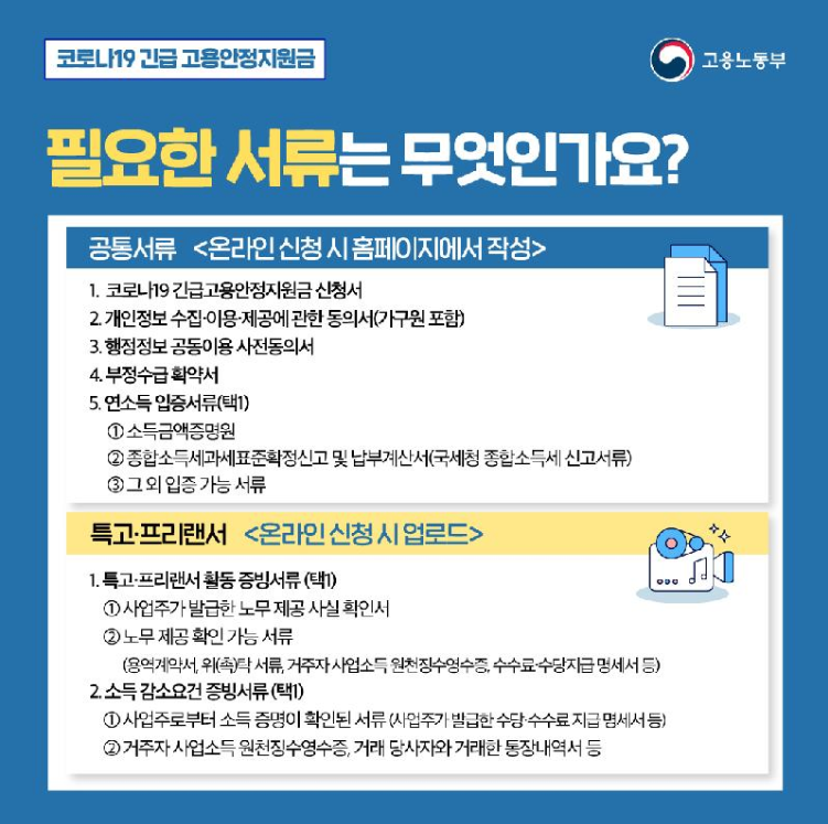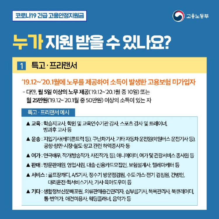특고, 프리랜서 긴급고용안정지원금을