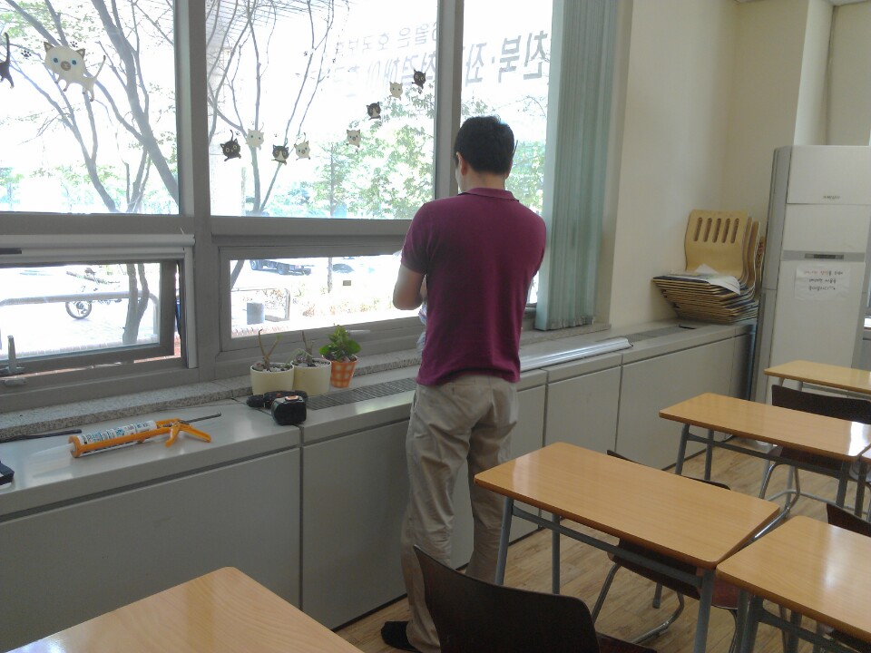 센터 교실과 도서실 창문에 '자동 롤스크린 방충망'이 설치되었습니다.