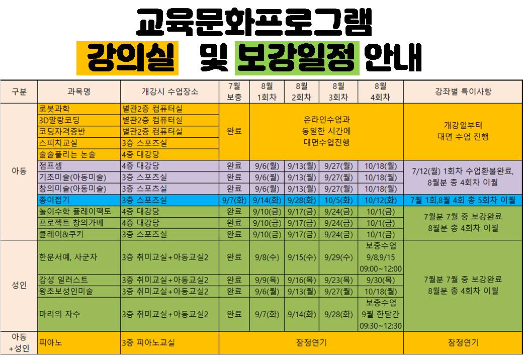 [교육문화 개강 및 보강일정안내]