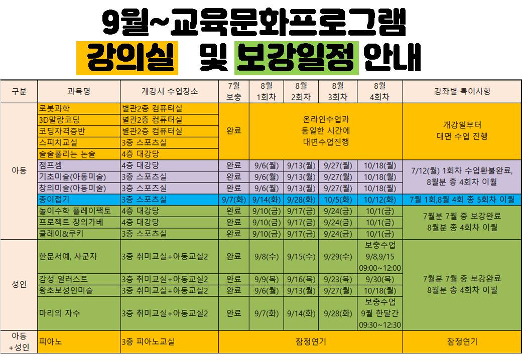 모든 강좌는 보강 완료일 이후부터 11월까지의 수업을 접수합니다.