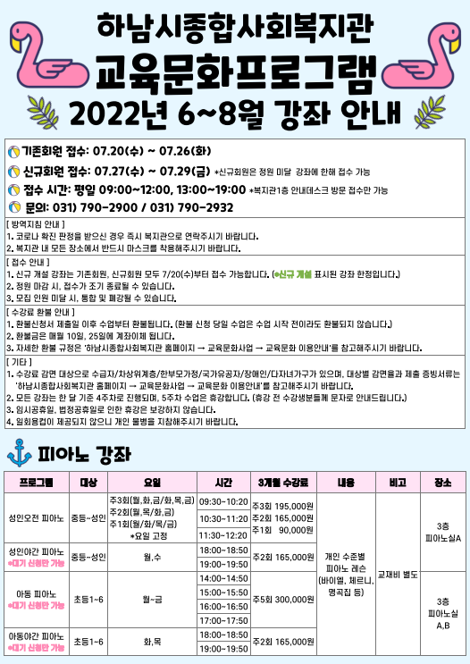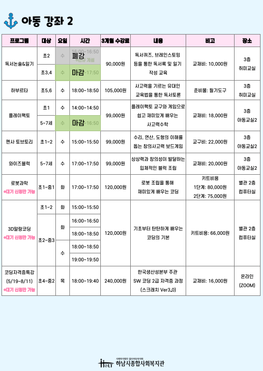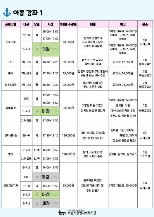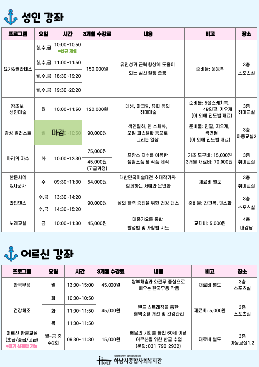 (아래 정보는 실시간으로 업데이트 되지 않습니다. 실시간 마감 강좌는 031-790-2900 / 031-790-2932로 연락주시면 확인 가능합니다.)