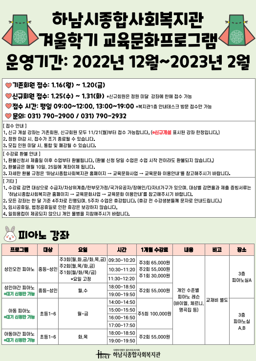 * 기존회원 접수: 1/16(월)~1/20(금)