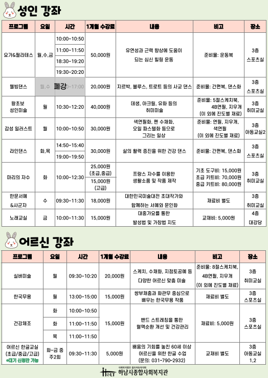 신규회원은 강좌별 잔여인원에 한해 접수 가능합니다.