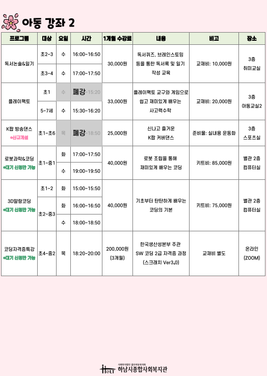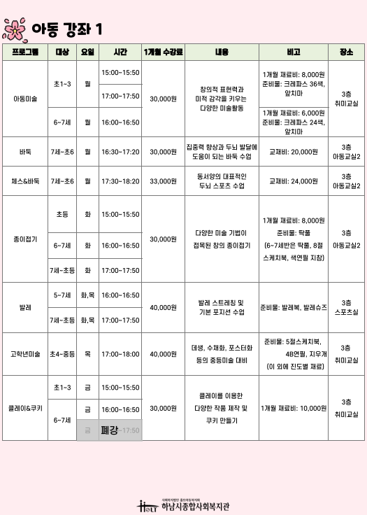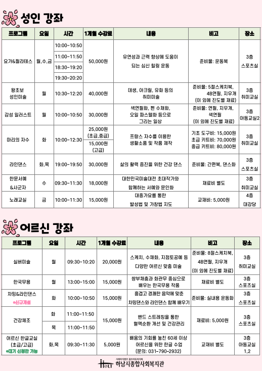 신규회원은 강좌별 잔여인원에 한해 접수 가능합니다.
