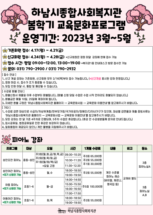 * 기존회원 접수: 4/17(월)~4/21(금)