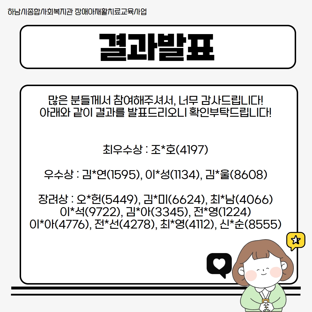 온라인 인식개선 캠페인 수상자 명단을 아래와 같이 발표하오니