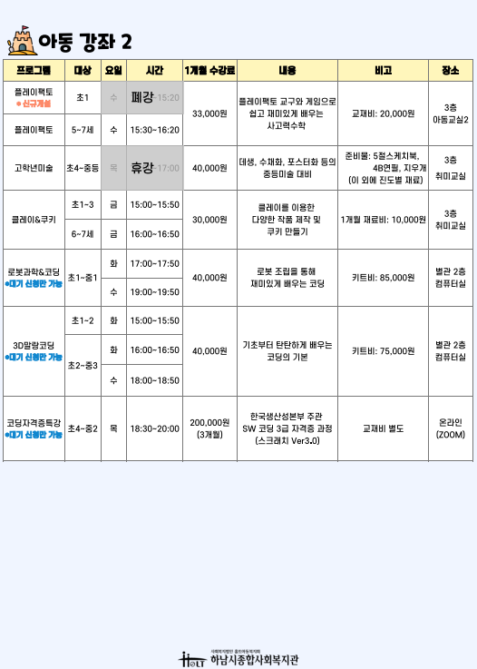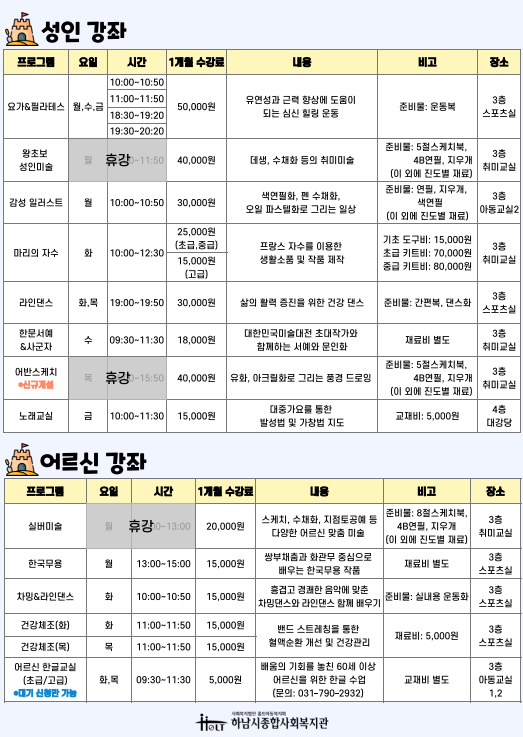 신규회원은 강좌별 잔여인원에 한해 접수 가능합니다.