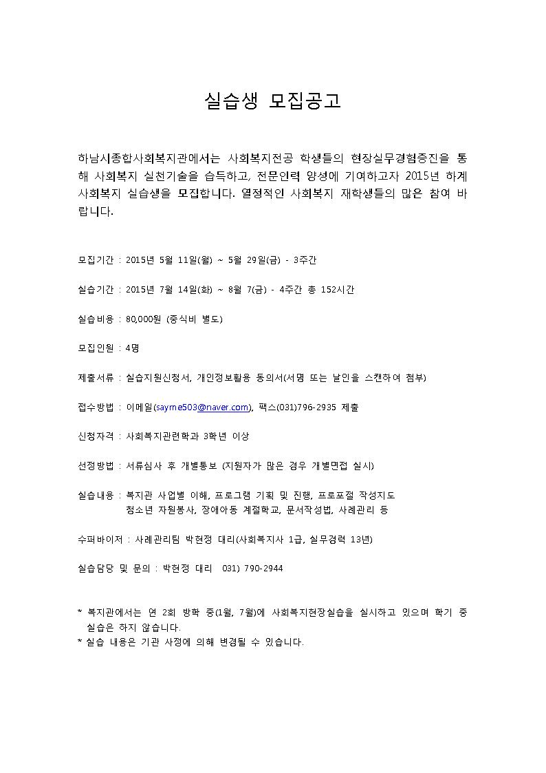 제출서류는 자료실 29번 실습신청서 및 개인정보동의서 다운받아 신청