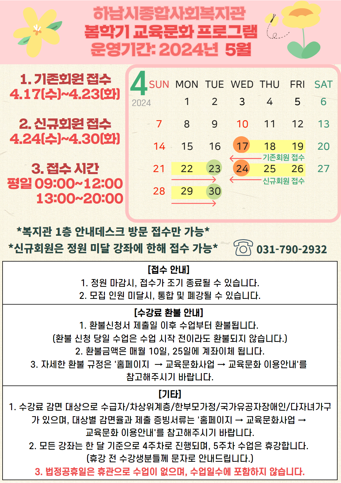 * 기존회원 접수: 4/17(수)~4/23(화)