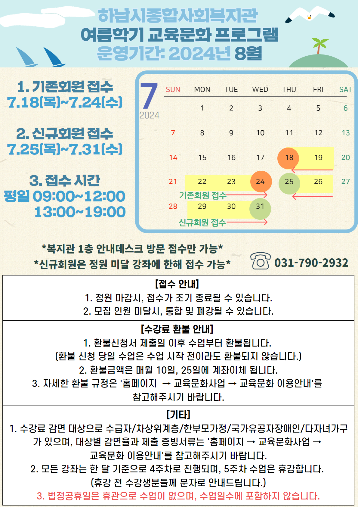 * 기존회원 접수: 7/18(목)~7/24(수)