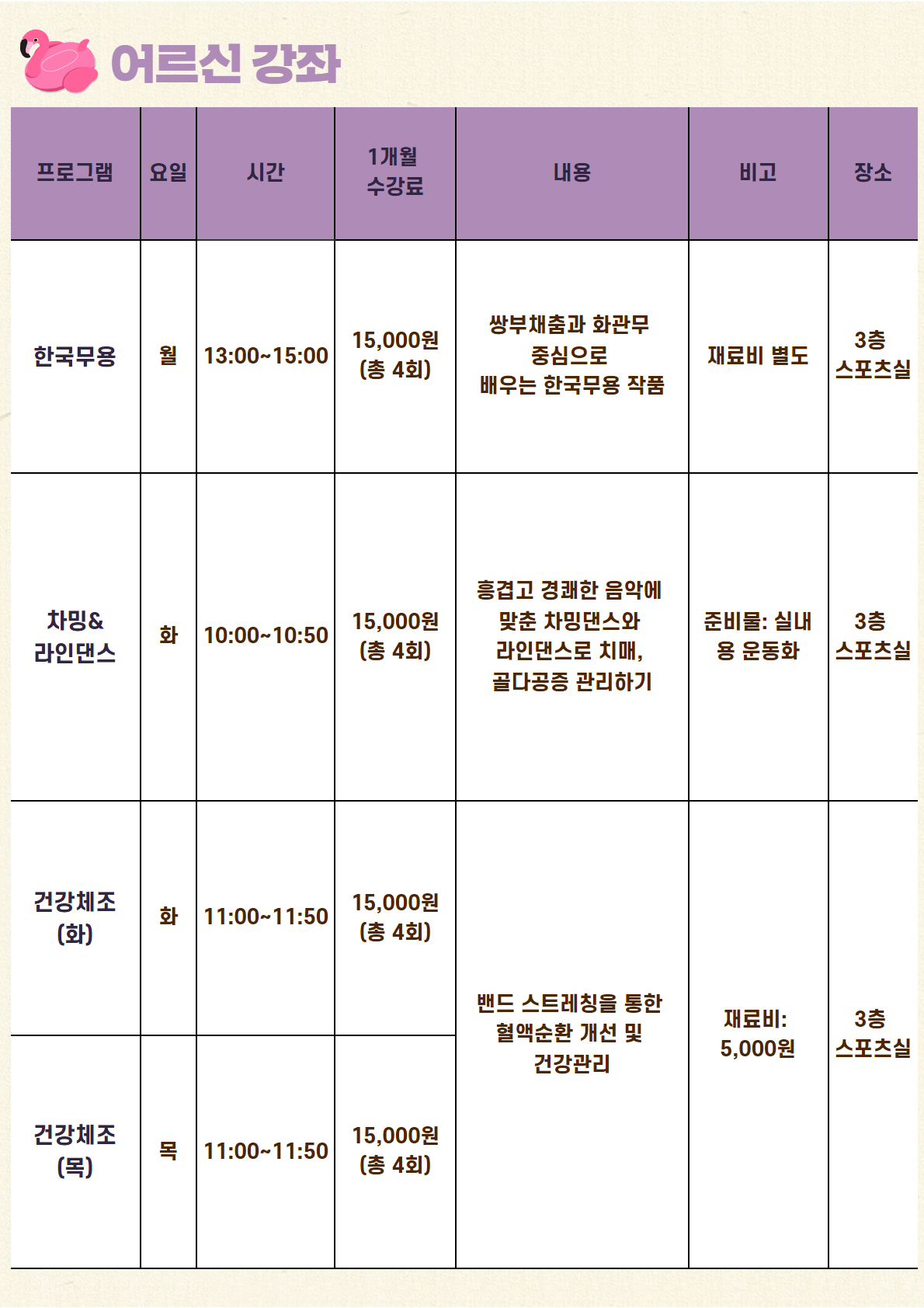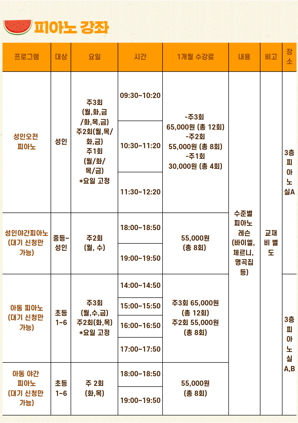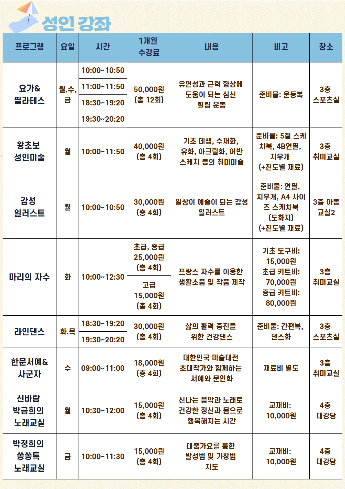 신규회원은 강좌별 잔여인원에 한해 접수 가능합니다.