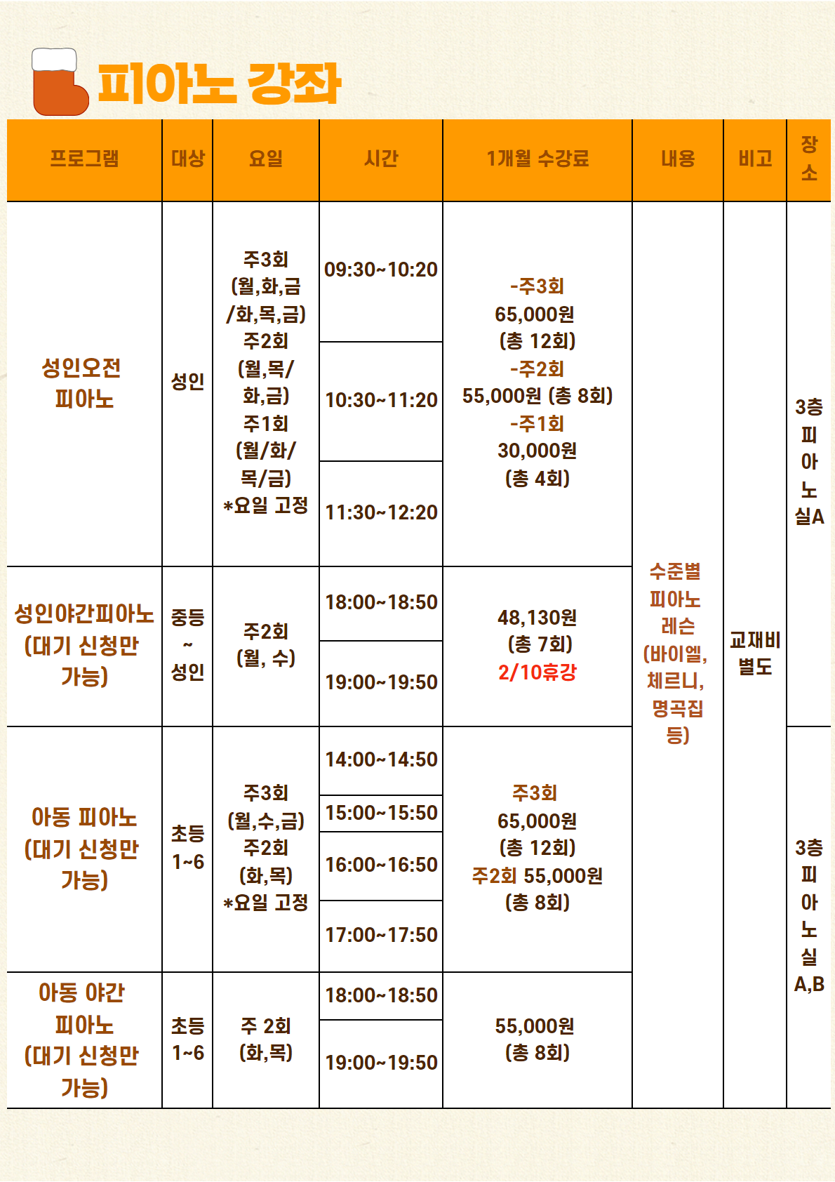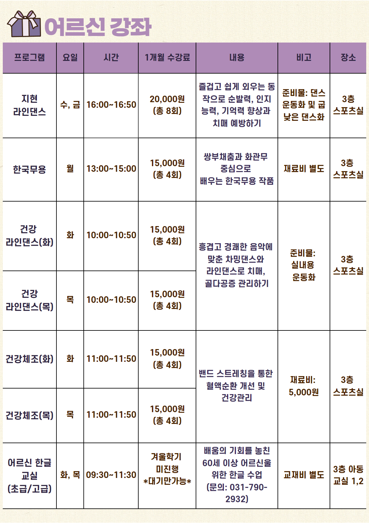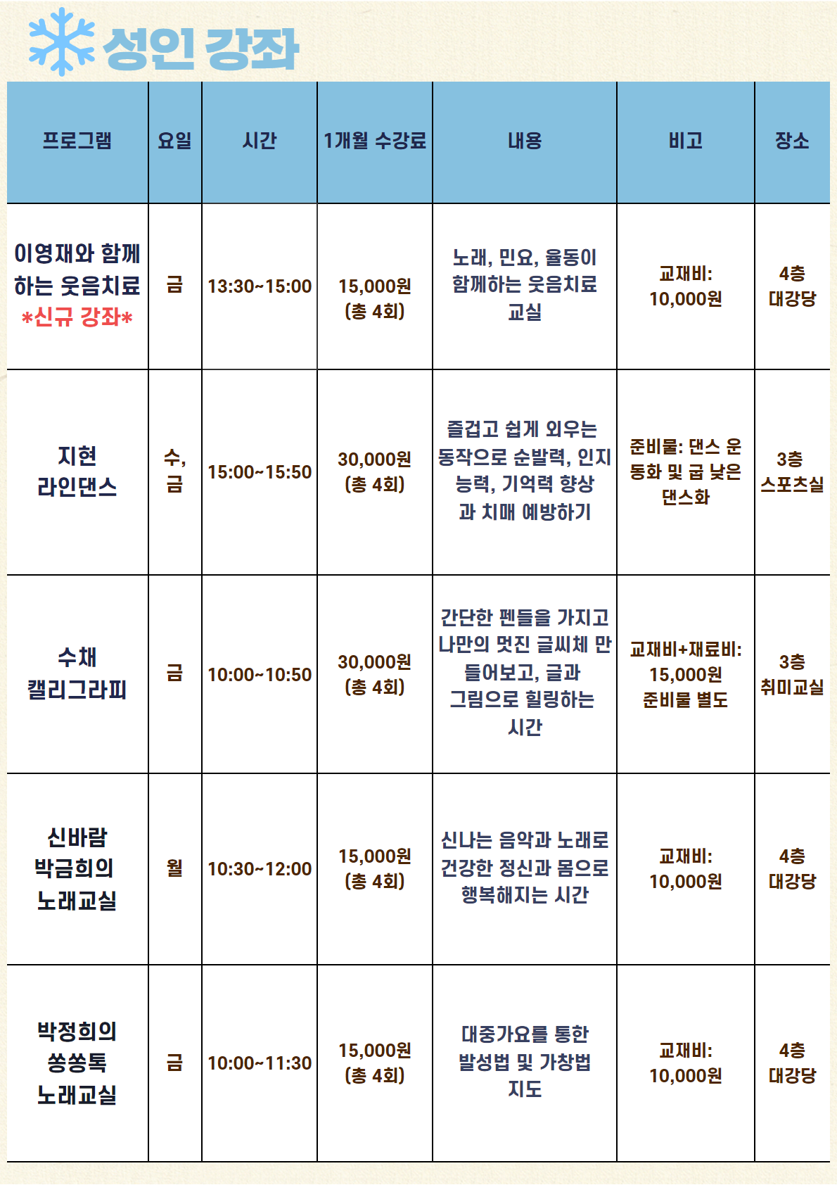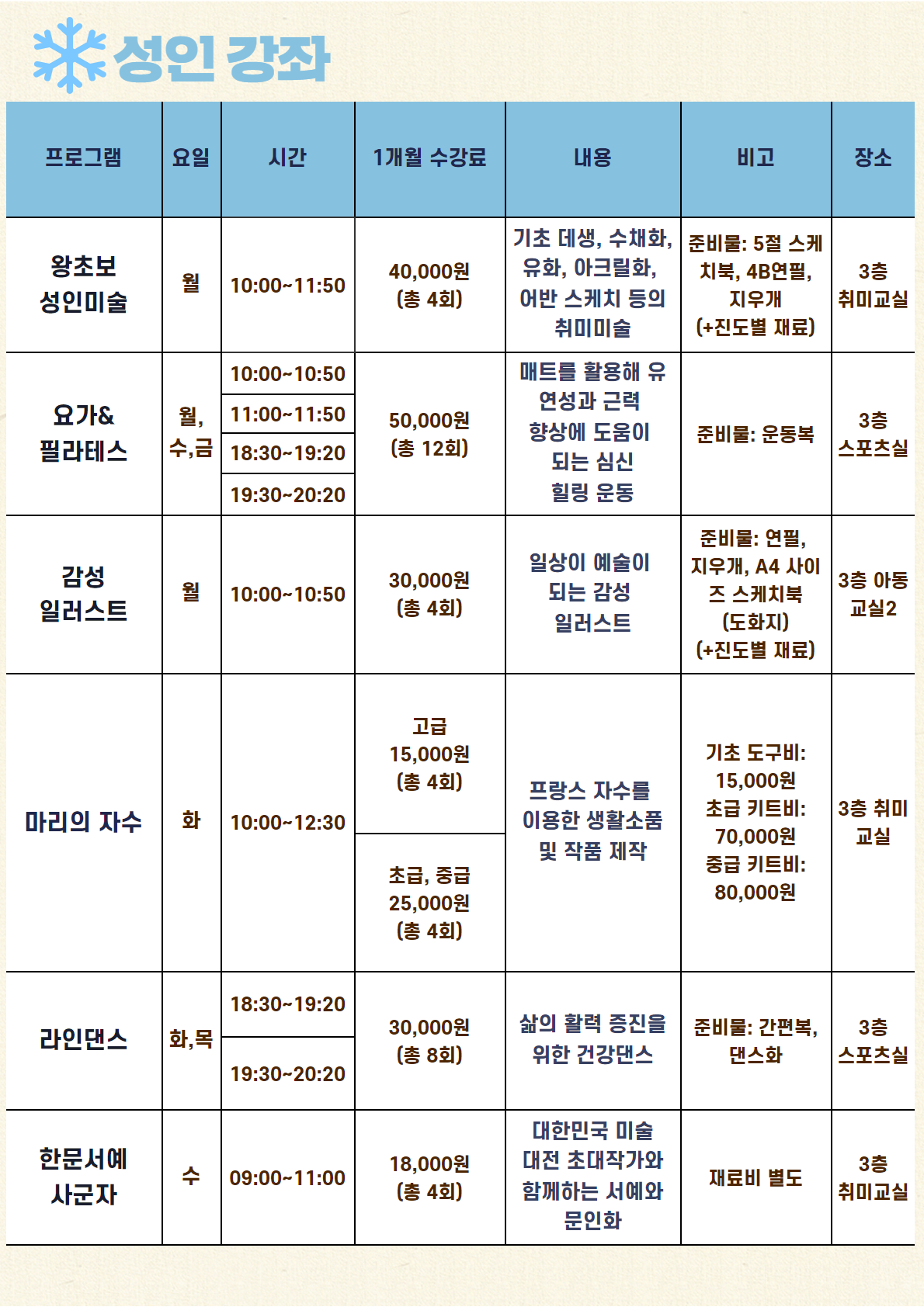 신규회원은 강좌별 잔여인원에 한해 접수 가능합니다.