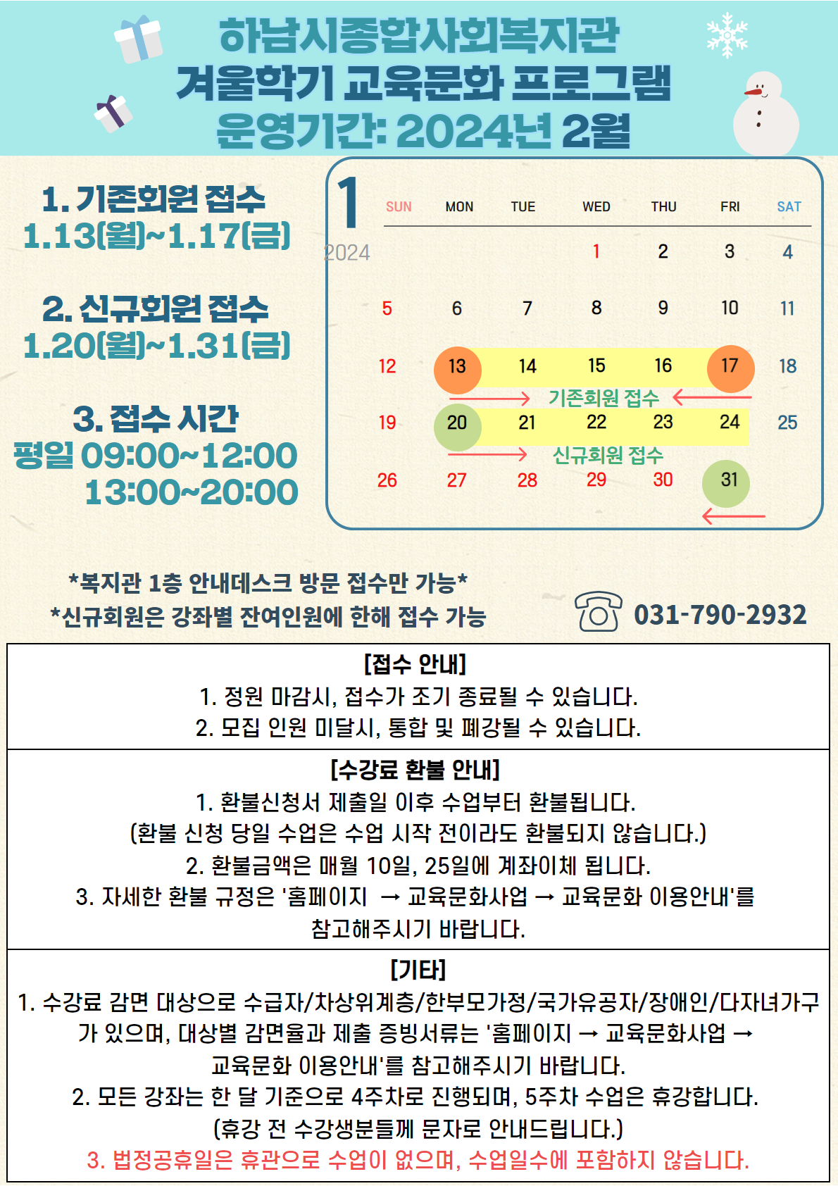 * 기존회원 접수: 1/13(월)~1/17(금)