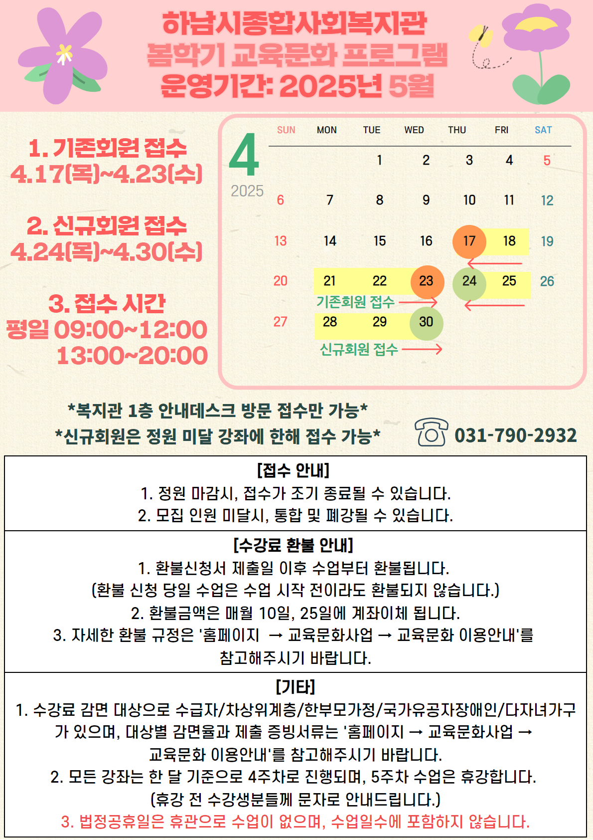 * 기존회원 접수: 4/17(수)~4/23(수)