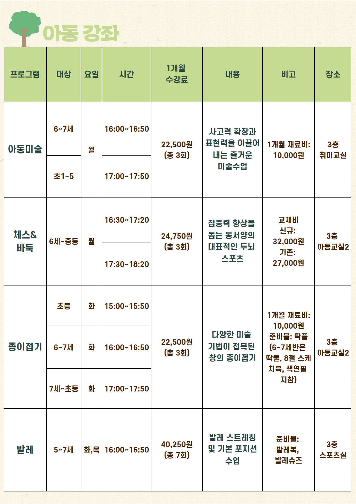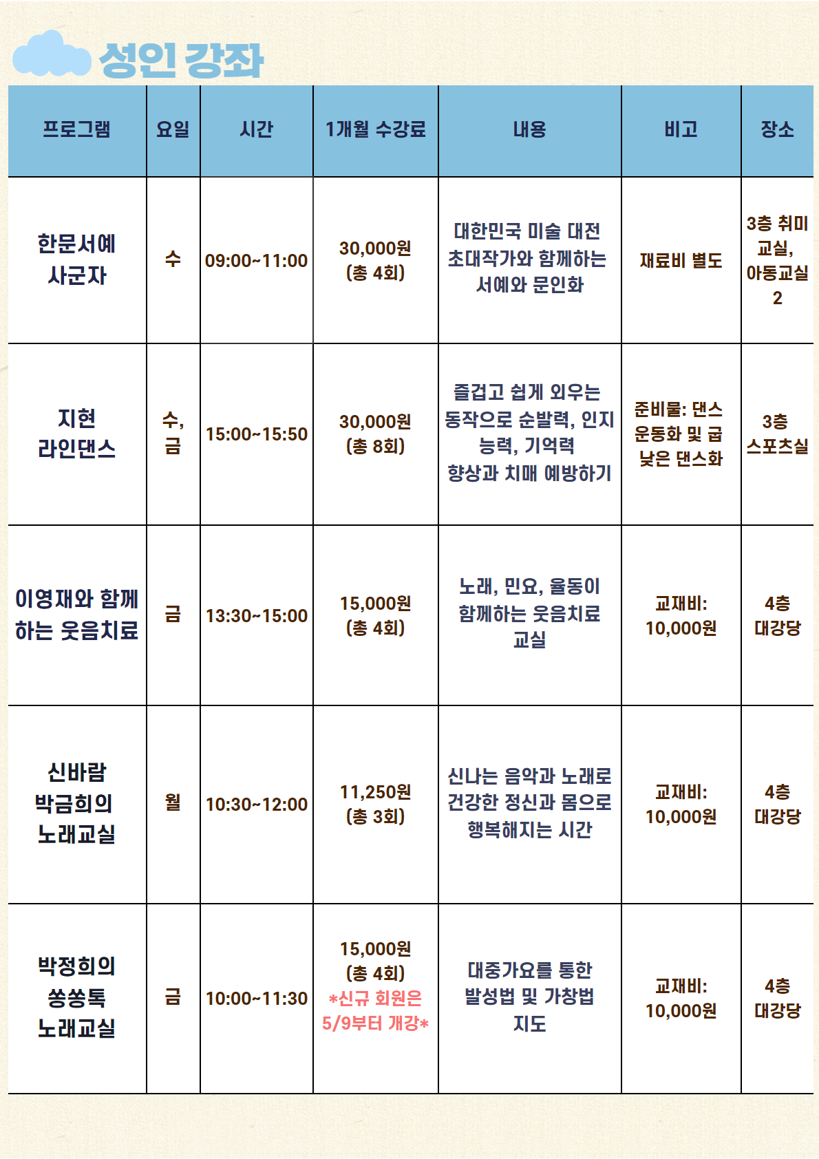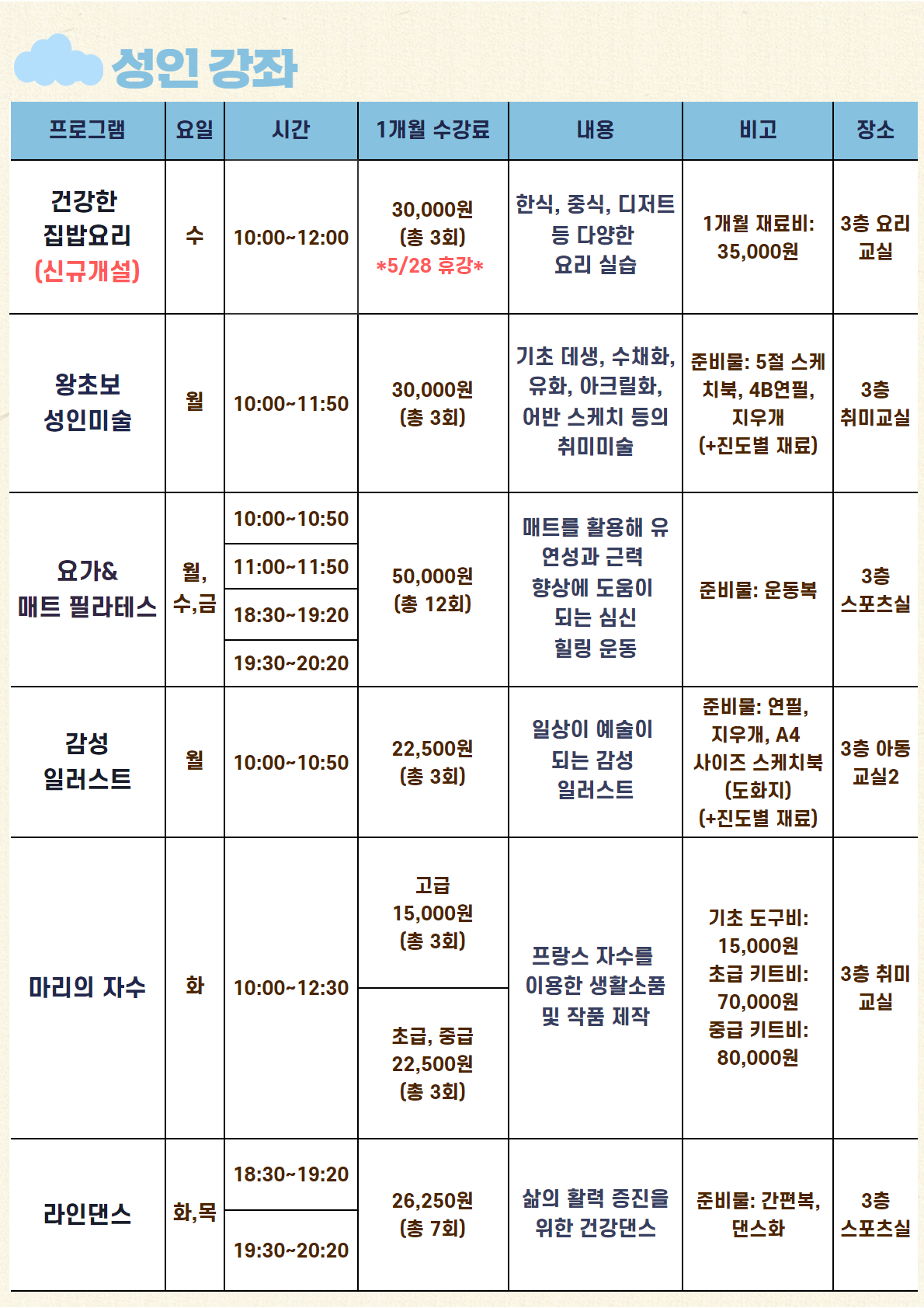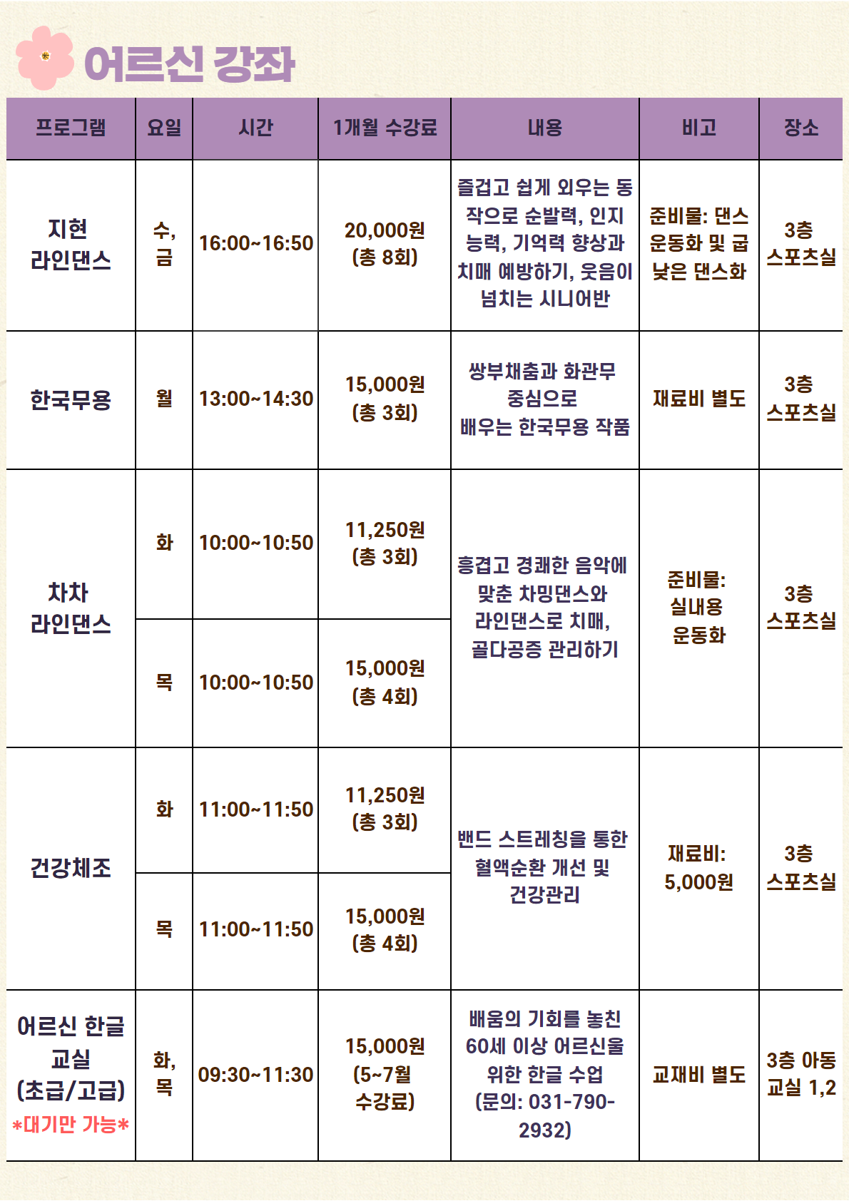 신규회원은 강좌별 잔여인원에 한해 접수 가능합니다.