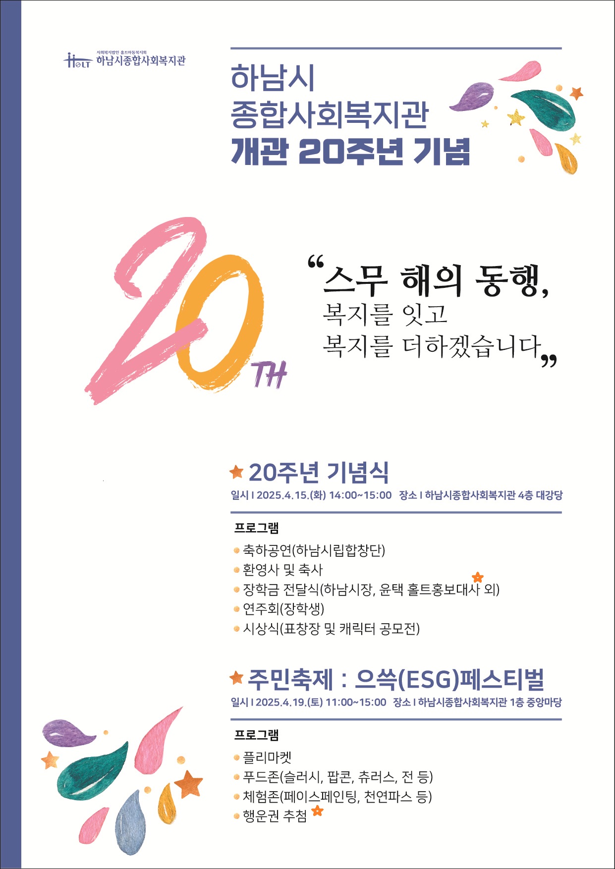 하남시종합사회복지관이 어느덧 20주년을 맞이했습니다.