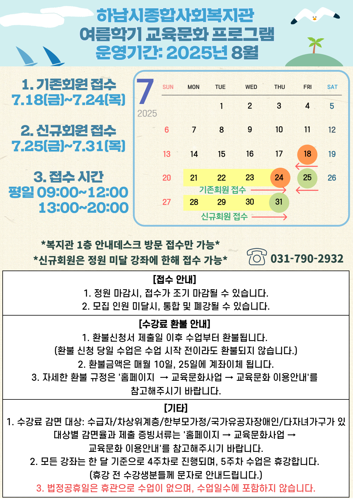 * 기존회원 접수: 7/18(금)~7/24(목)