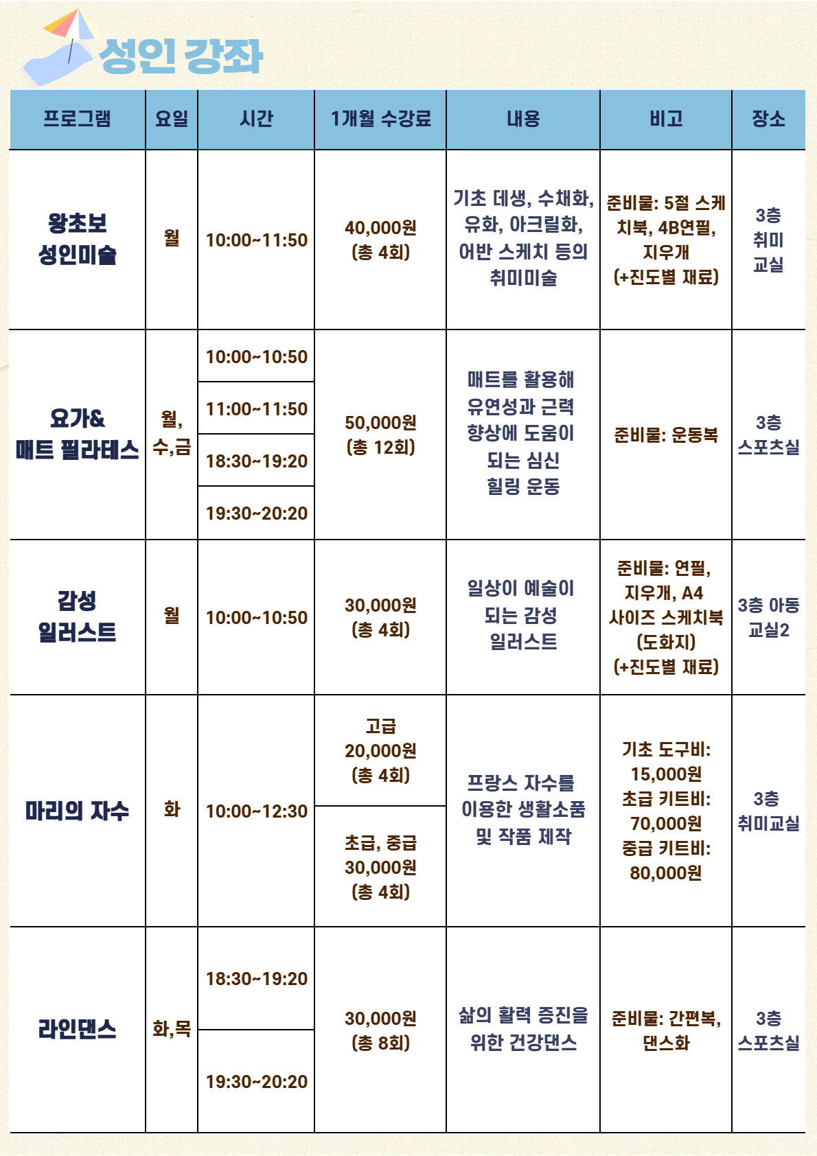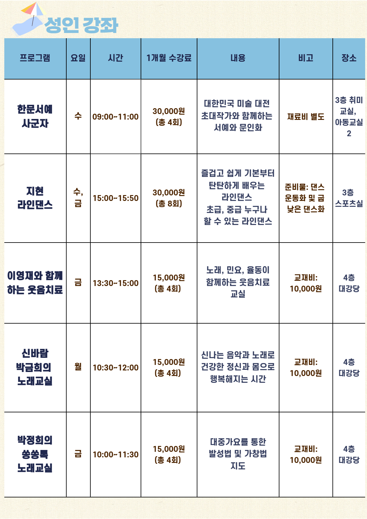 신규회원은 강좌별 잔여인원에 한해 접수 가능합니다.