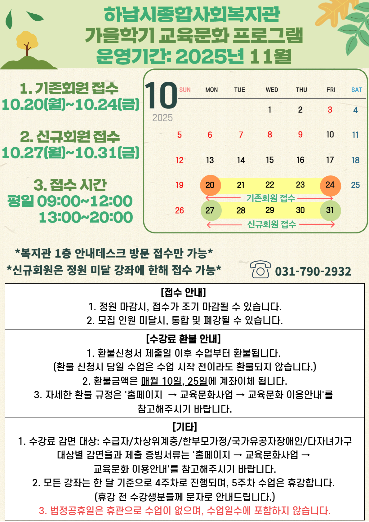 * 기존회원 접수: 10/20(월)~10/24(금)