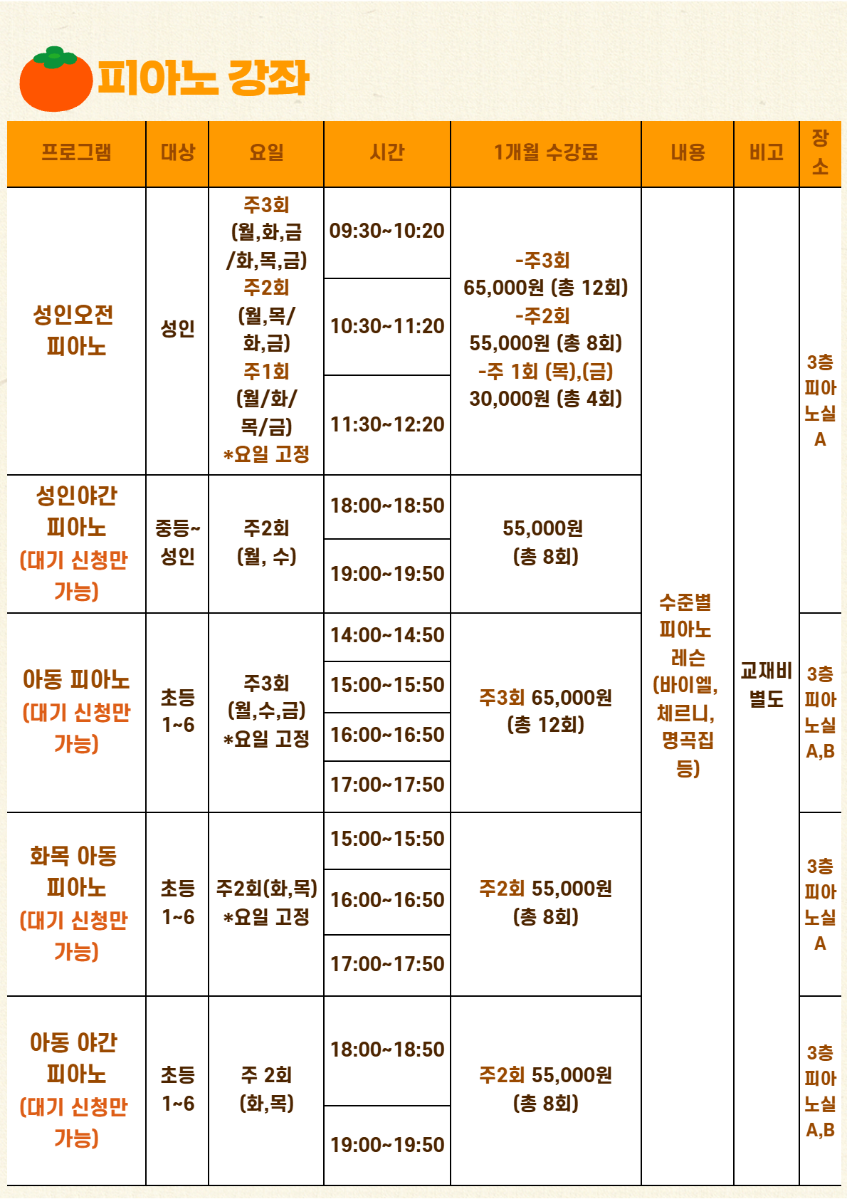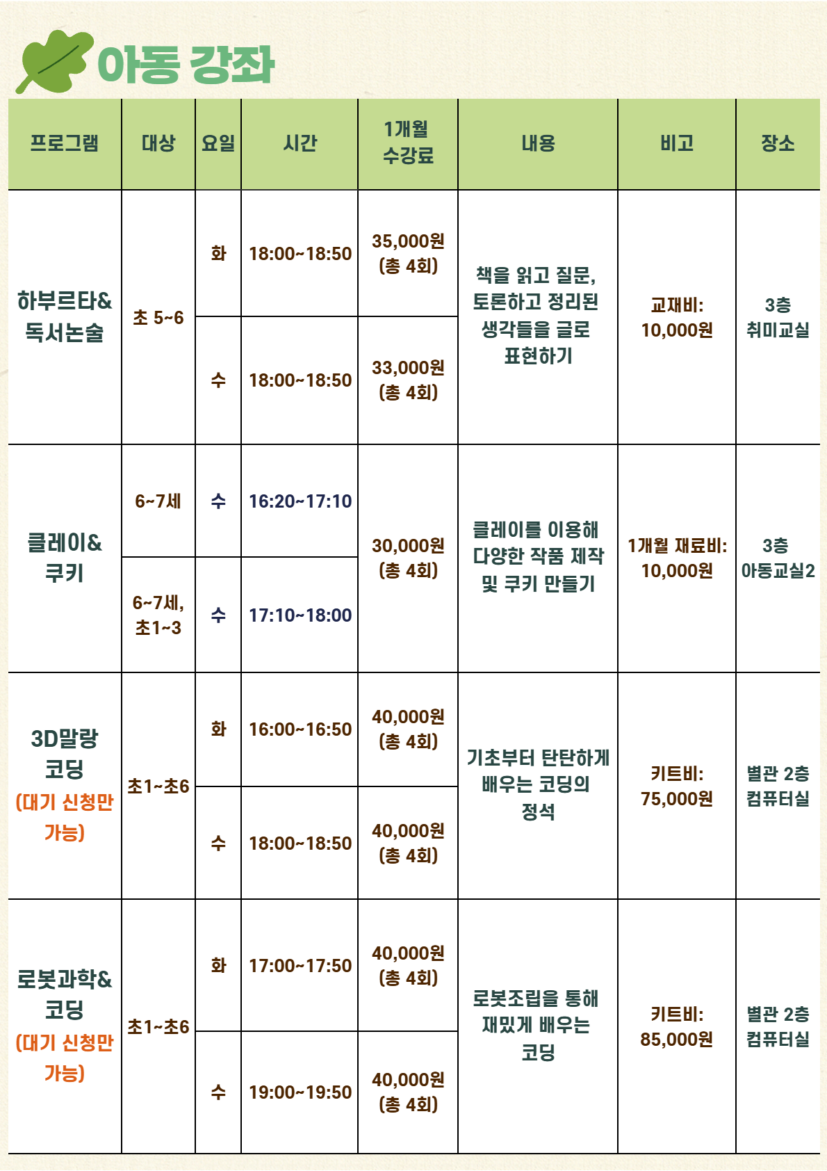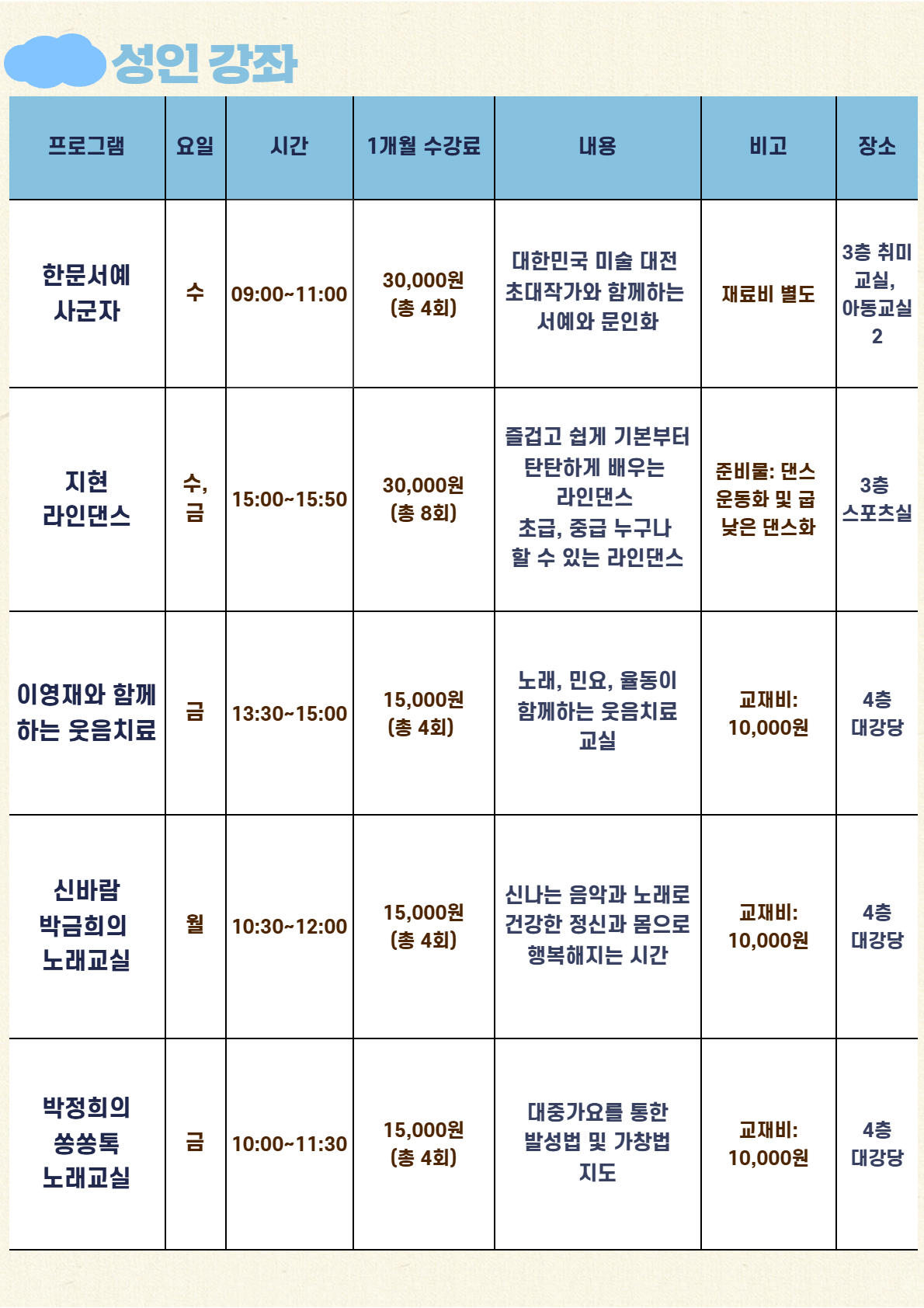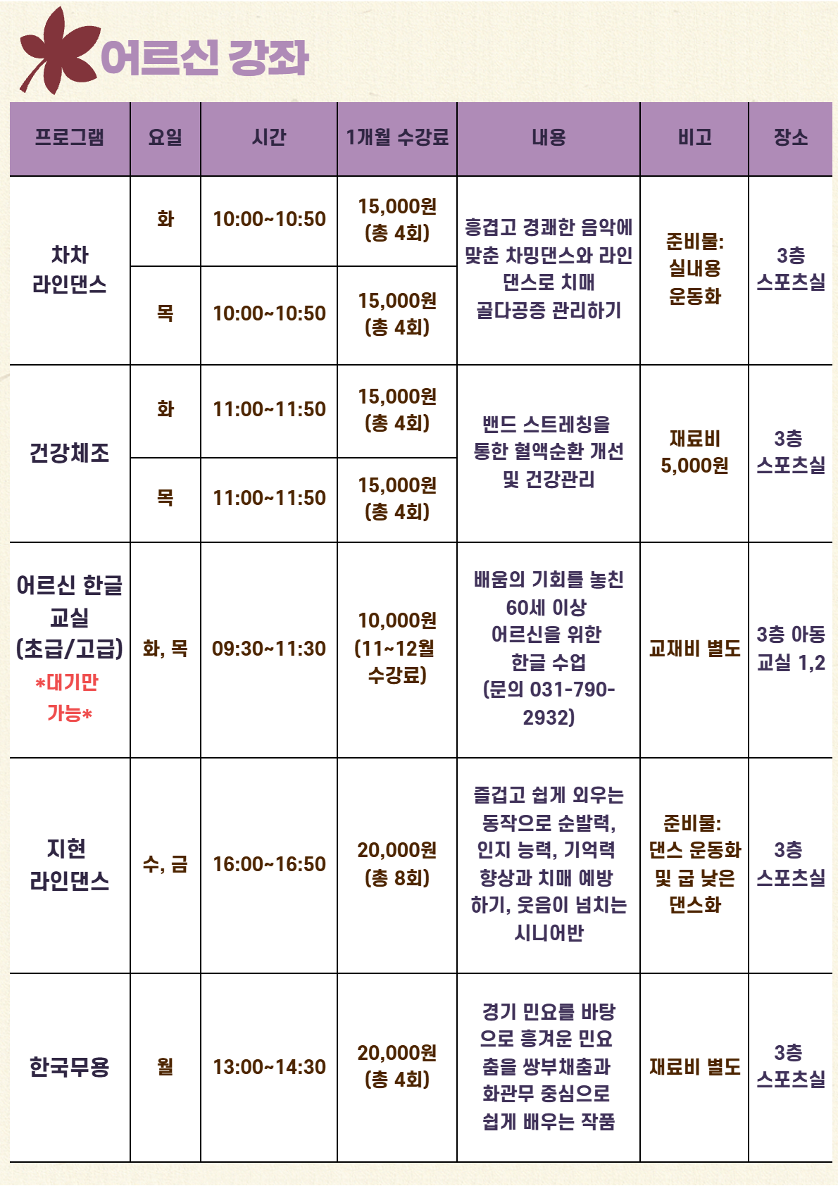 신규회원은 강좌별 잔여인원에 한해 접수 가능합니다.