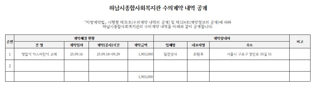 2025년 10월 수의계약 내역 공개