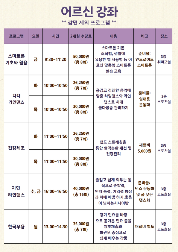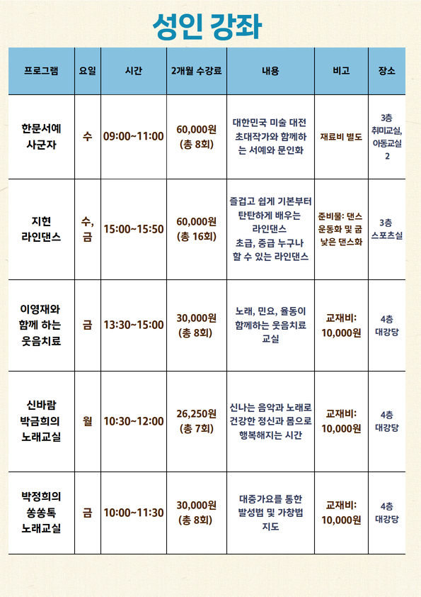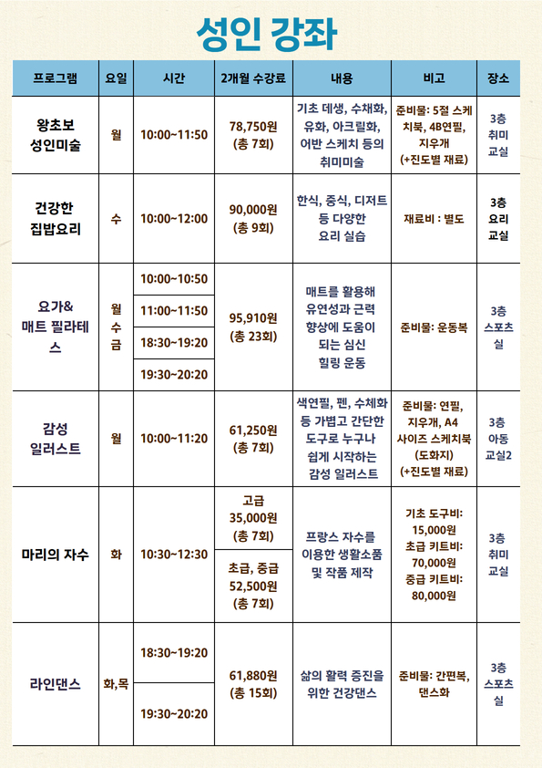 신규회원은 강좌별 잔여인원에 한해 접수 가능합니다.