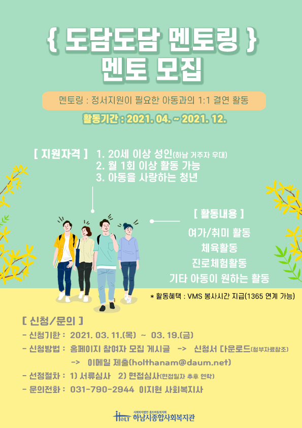 [하남시종합사회복지관] 2021 도담도담 멘토링 참여 신청서.hwp