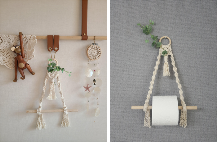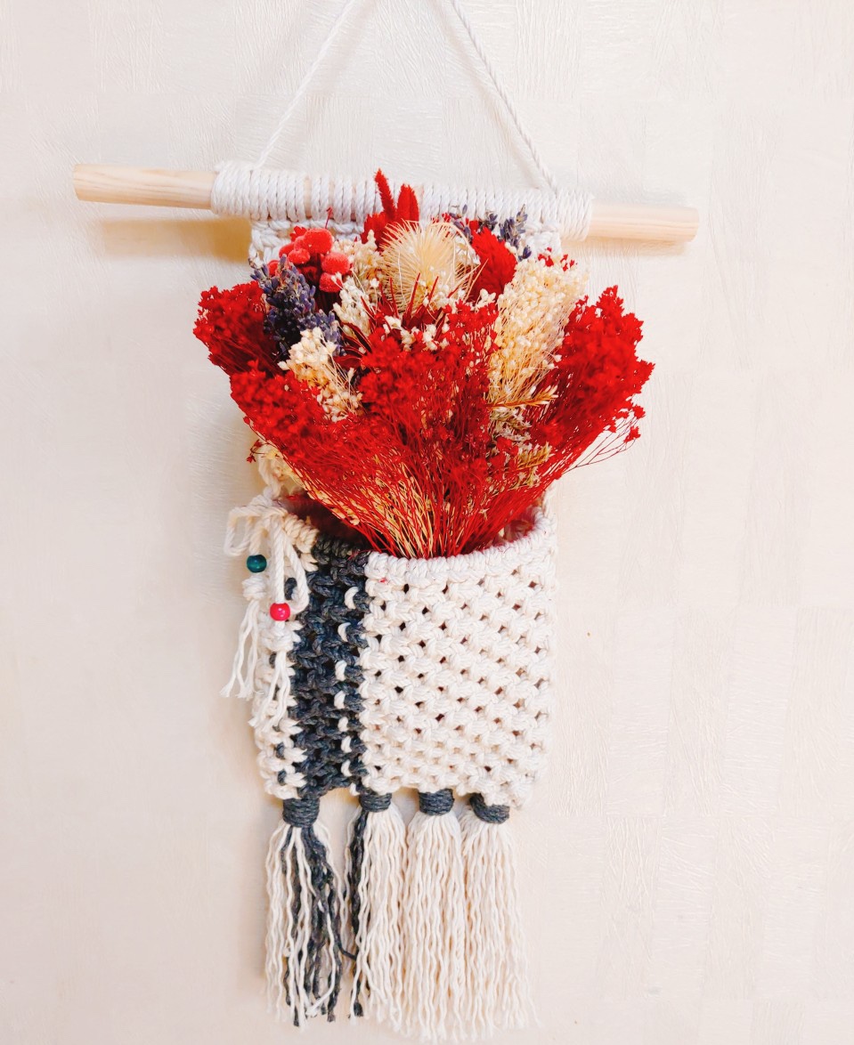 ** 마크라메 매거진은 잡지, 책, 꽃 등 다양한 물건을 보관할 수 있는 인테리어 소품입니다 **