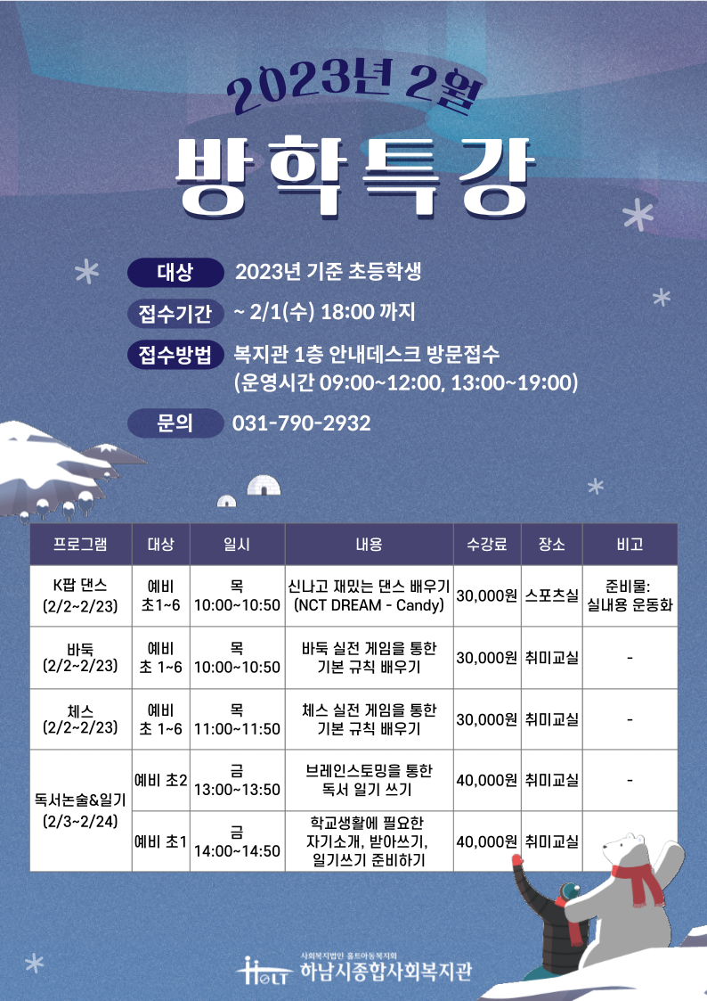 방학특강은 2023년 기준 초등학생 친구들을 대상으로 진행합니다.