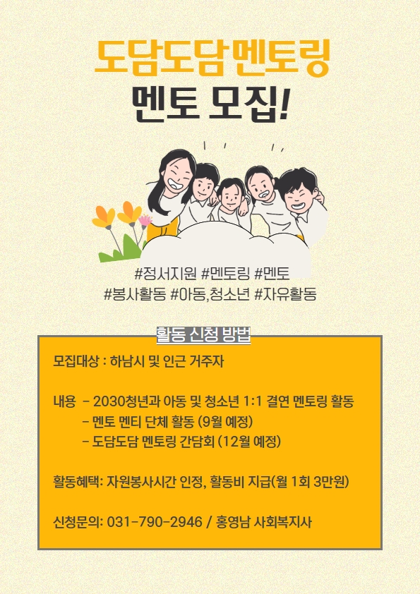 2023년 도담도담 멘토링의 멘토 추가 모집합니다!