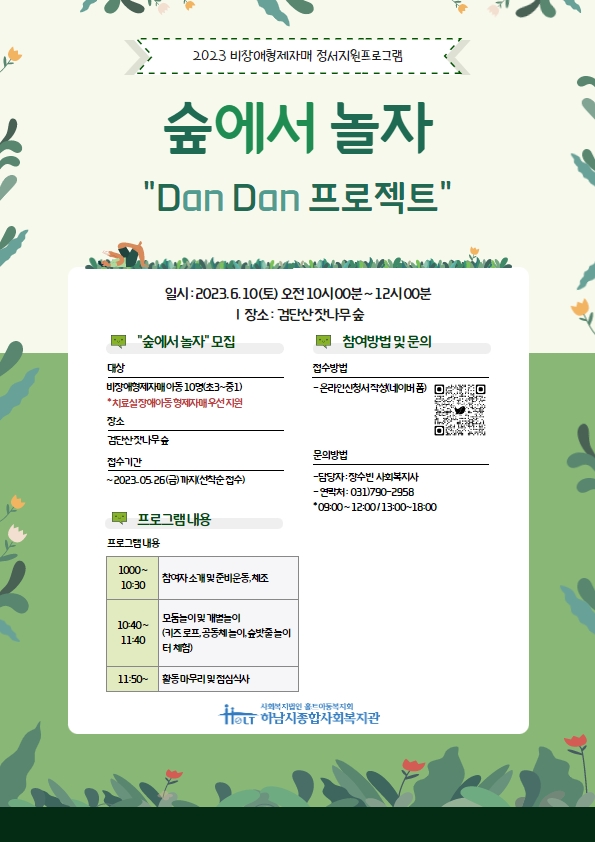 [모집마감] 2023년 비장애형제자매아동 정서지원 프로그램 "숲에서 놀자" 참여자 모집