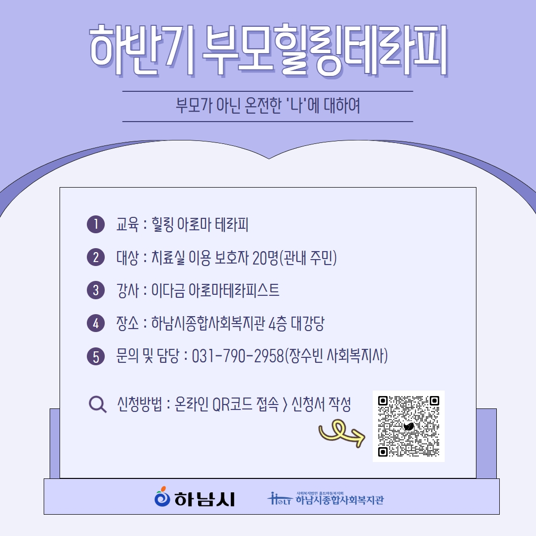 2023년 하남시종합사회복지관 하반기 부모힐링테라피 (10/4일 부터 접수 가능합니다)