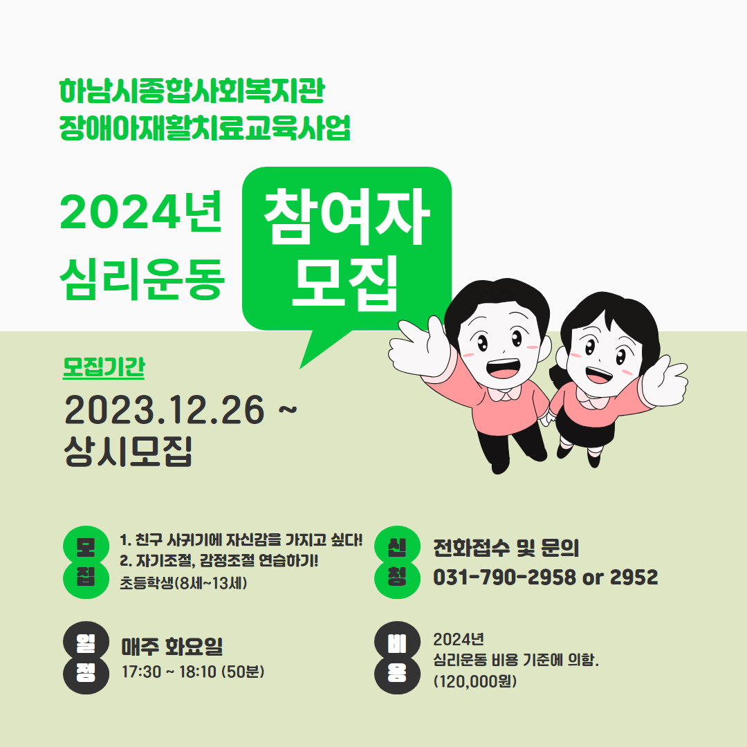 2024년 하남시종합사회복지관 장애아재활치료교육사업 심리운동 참여자 모집