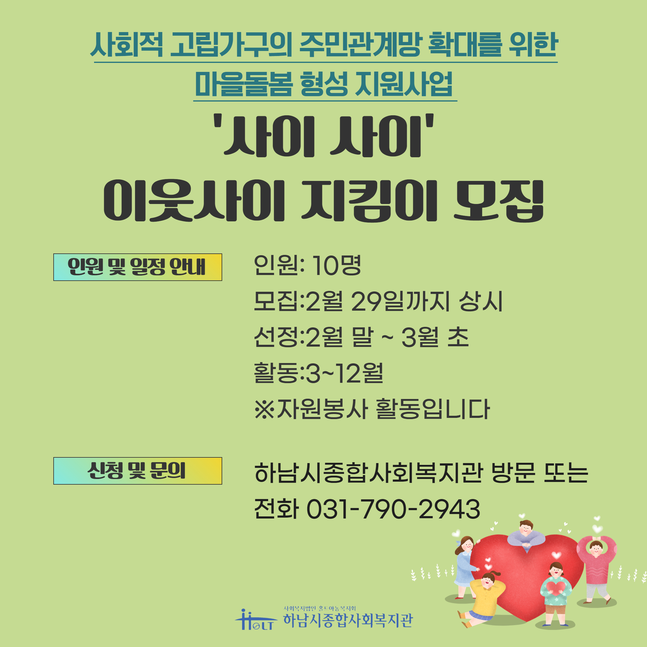 (모집완료)사람과 사람 사이를 잇다 '사이 사이' 이웃사이 지킴이 모집