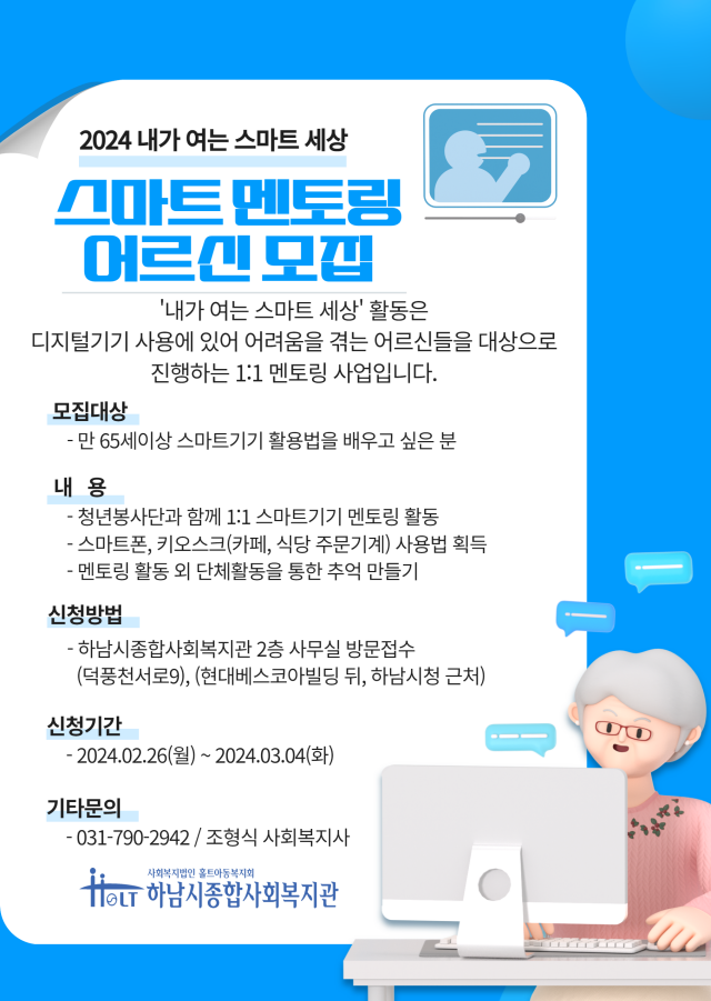 안녕하세요 하남시종합사회복지관입니다.