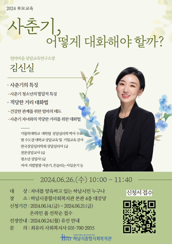 2024년 2차 부모교육 '사춘기의 이해' 를 진행하고자 하오니