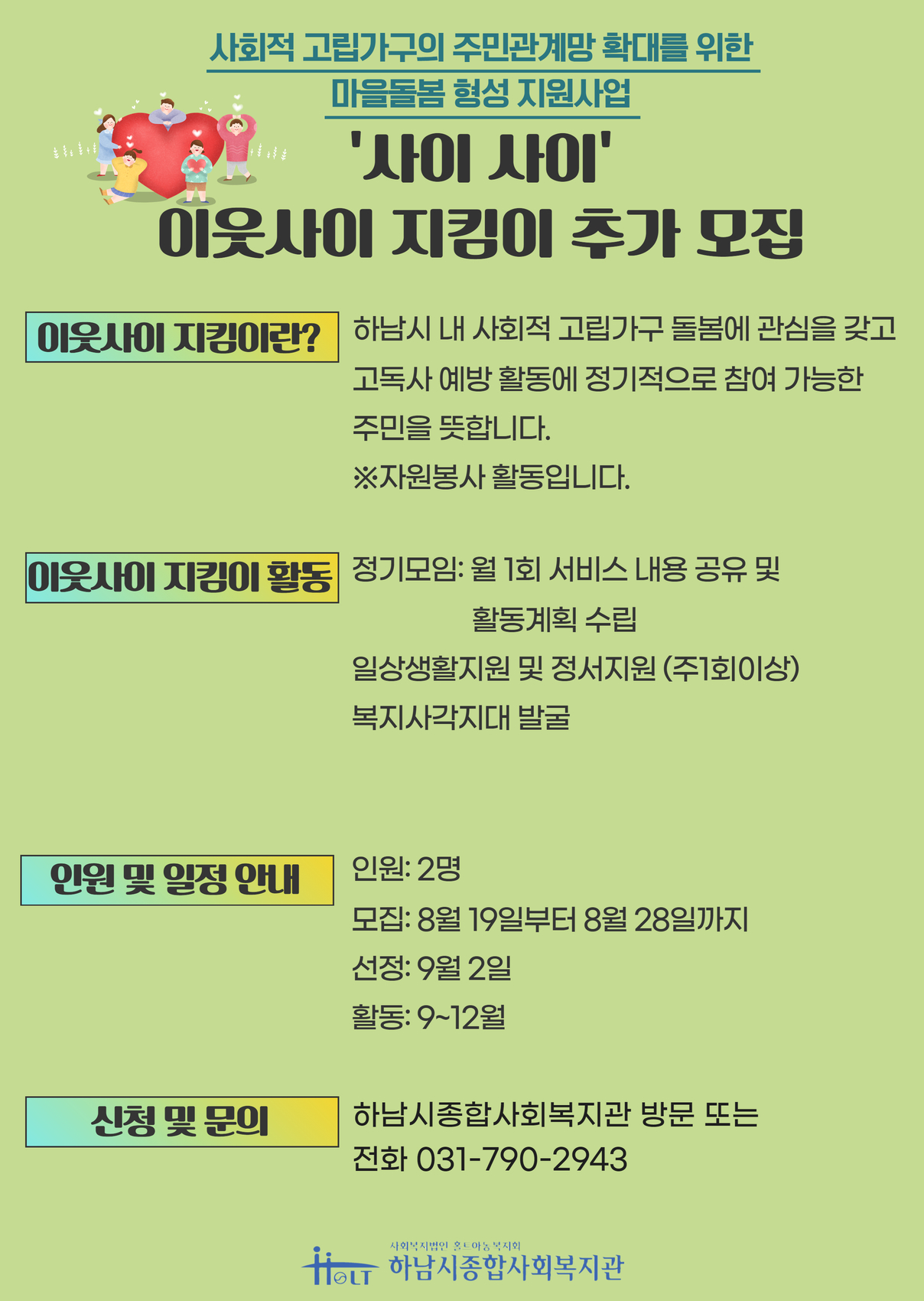 사람과 사람 사이를 잇다 '사이 사이' 이웃사이 지킴이 추가 모집