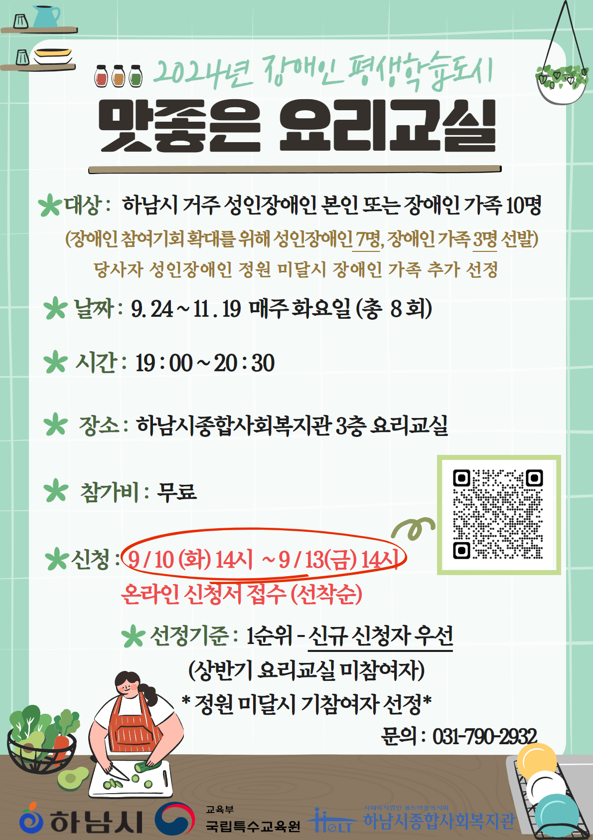 장애인평생학습도시 '맛좋은 요리교실' 참여자 모집