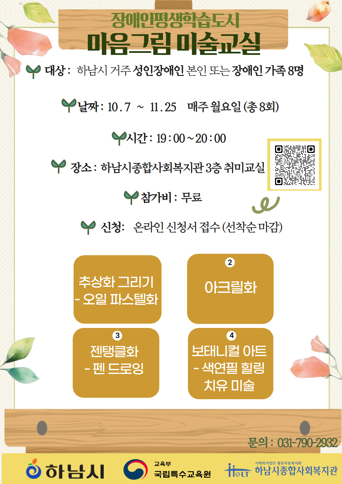 신청 방법 : 전화 (031-790-2932) 또는 온라인 폼 작성(링크 또는 QR코드 접속)