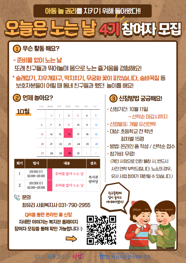 2024 아동권리 증진사업 '오늘은 노는 날' 4기 참여자 모집을 진행합니다!