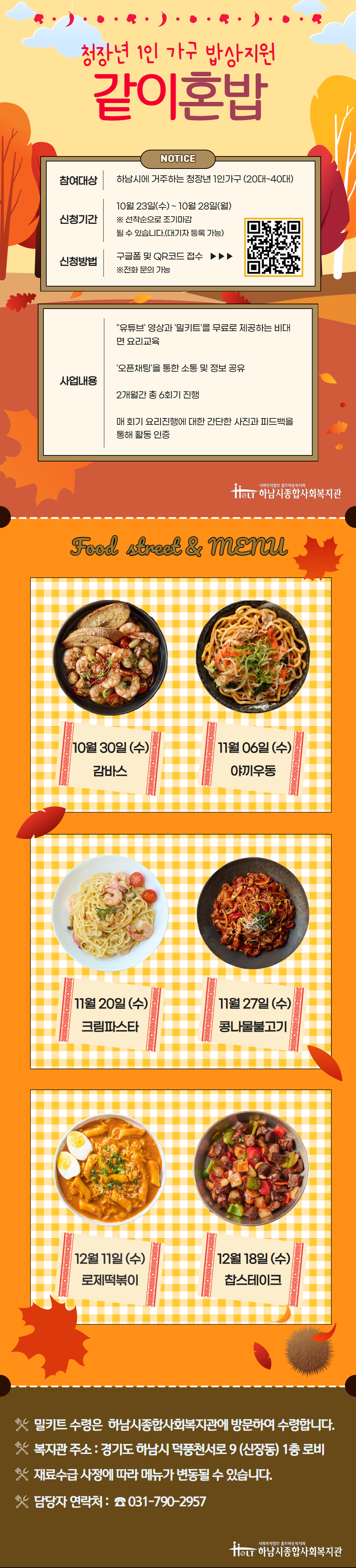 청장년 1인가구 밥상지원 '같이혼밥' 10기 모집