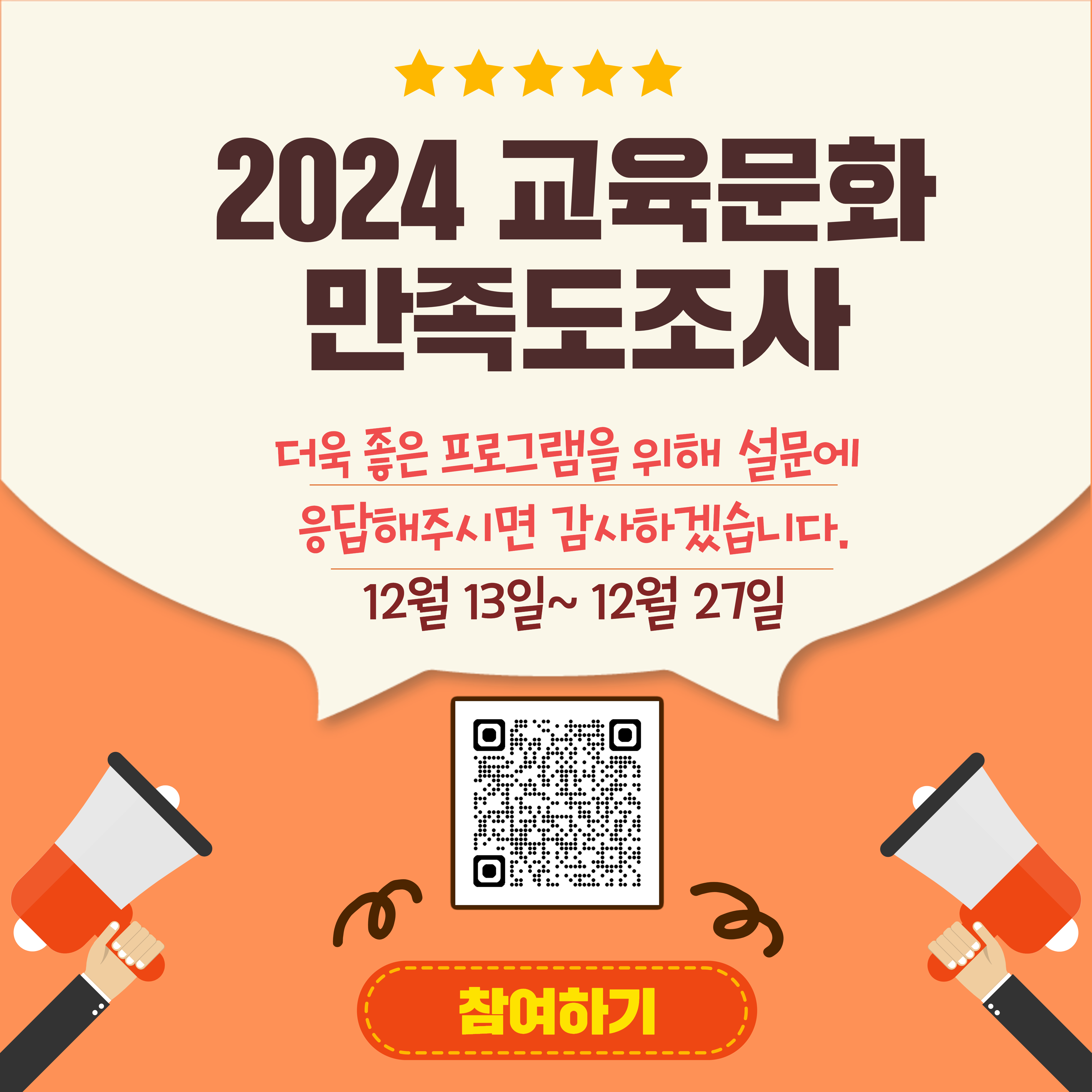 교육문화 프로그램 이용하고 있는 수강생을 대상으로 만족도 설문 조사를 진행하고자 합니다.
