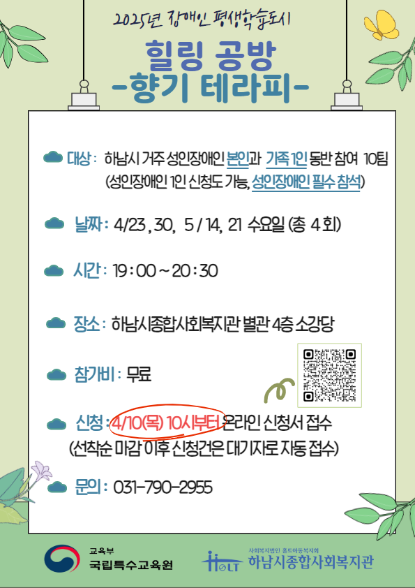 장애인 평생학습도시 힐링공방- 향기 테라피 참여자 모집