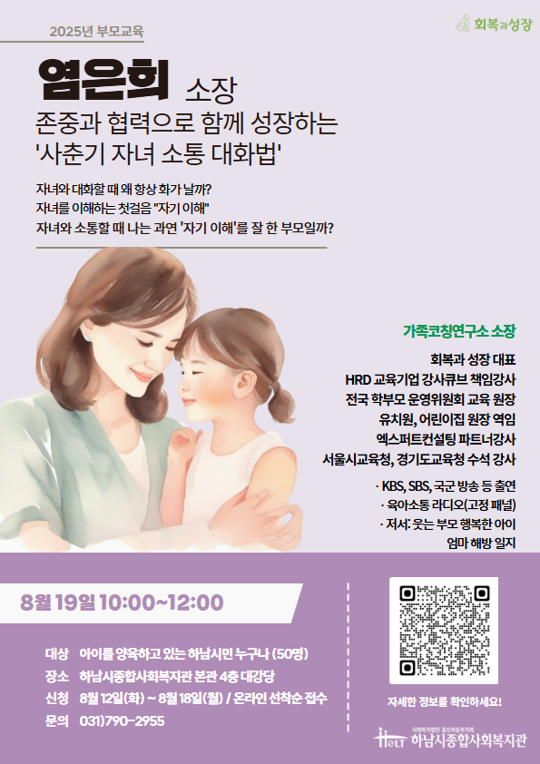 존중과 협력으로 함께 성장하는 '사춘기 자녀 소통 대화법'에 대해 강의를 진행하오니
