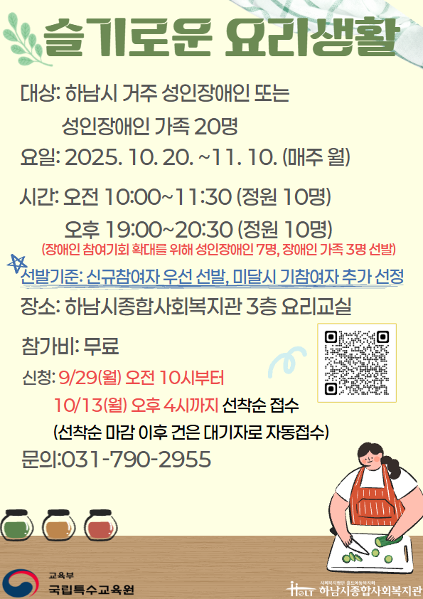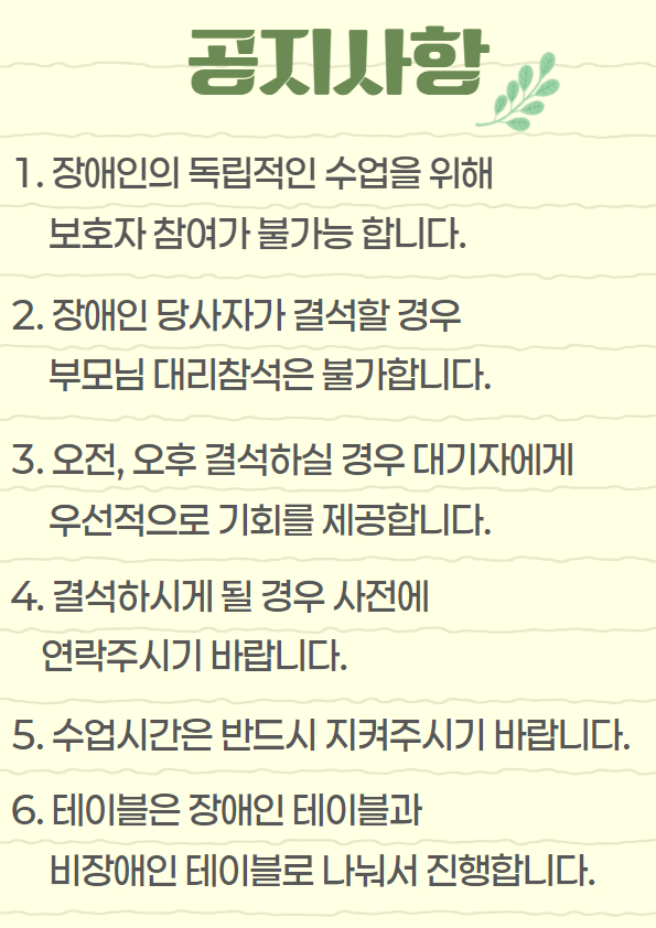 대상 : 하남시 거주 성인장애인 본인 또는 성인장애인 가족 20명