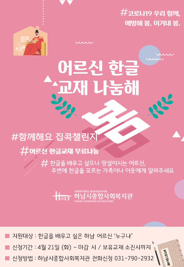 집콕챌린지 4탄! 어르신 한글교재 무료나눔(마감)