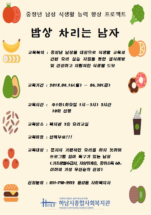 '밥상 차리는 남자' 프로그램 참여자 모집 2018-03-26 조회수 12,151 착한이웃 현판 전달식(한국전력공사 동서울전력지사) 2018-03-22 조회수 11,702 착한이웃 현판 전달식(한국수자원공사 팔당권지사) 2018-03-20 조회수 11,820 착한이웃 현판 전달식(구림장어) 2018-03-20 조회수 11,860 손사랑 나눔 동아리 후원금 전달식 2018-03-20 조회수 11,816 하남시종합사회복지관 자원봉사단 모집 2018-03-20 조회수 12,529 착한이웃 현판 전달식(지호한방삼계탕) 2018-03-16 조회수 12,148 2018 노인일자리 및 사회활동 지원사업 발대식 및 활동교육 실시완료 2018-03-16 조회수 12,150 저소득가정 돕기 유기농 아로니아 쨈 판매 2018-03-15 조회수 12,843