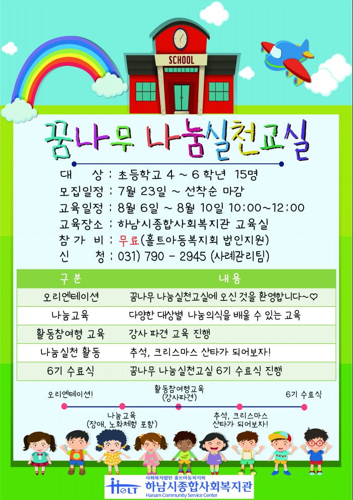 안녕하세요. 꿈나무 나눔실천교실 6기 모집을 실시합니다~ ^^